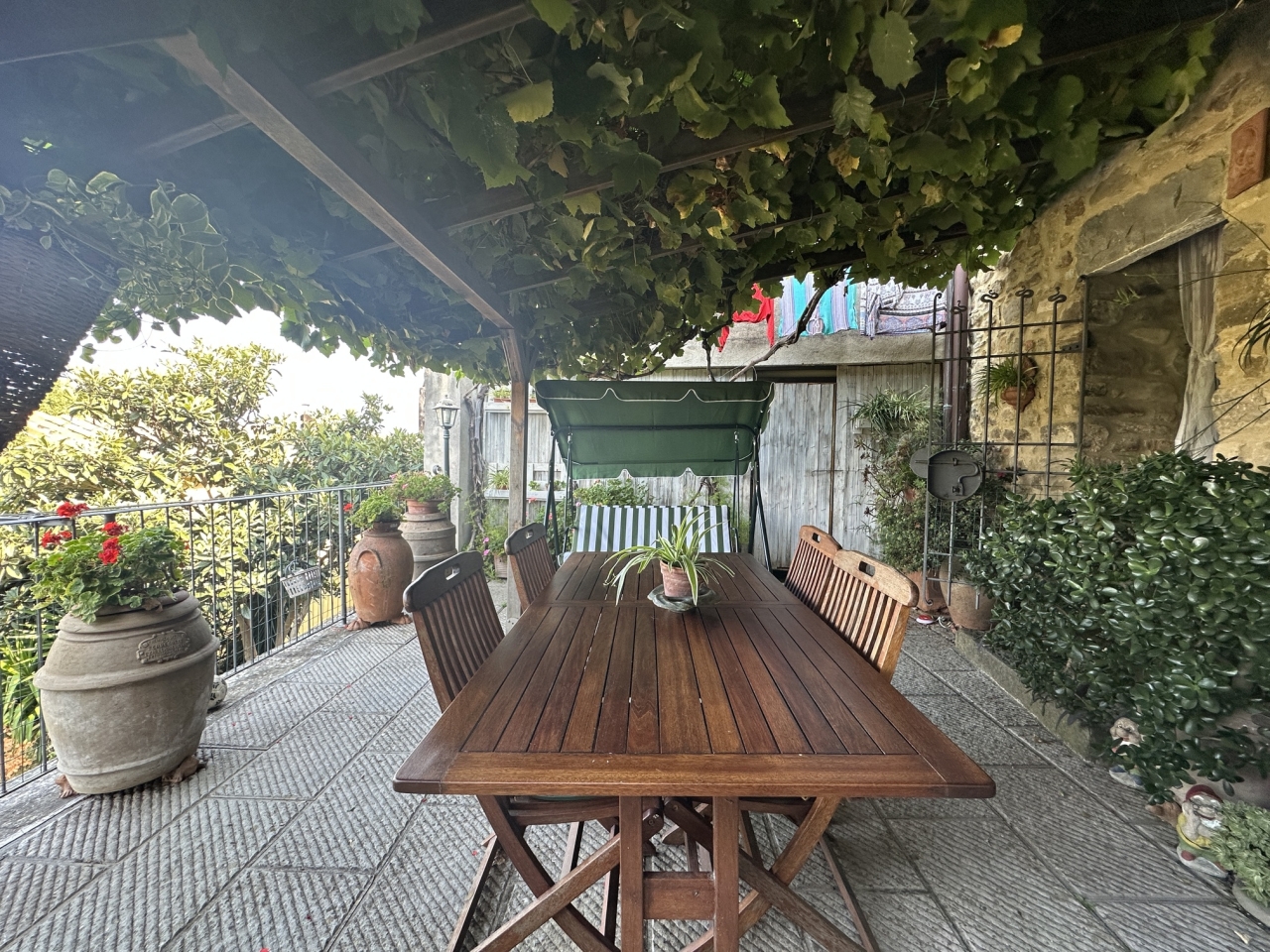 Nel borgo di Montorgiali, a soli 3 km da Scansano, dove la vita trascorre lenta ed il rumore delle macchine è quasi impercettibile, proponiamo in vendita una casa indipendente nel pieno centro storico. L’immobile ha un doppio ingresso, quello principale su strada e uno più privato dentro la corte. Accedendo da quest’ultimo entriamo nella prima cucina che affaccia sulla chicca di questa abitazione, una terrazza con pergolato di uva fragolina che apre la sua vista su un panorama mozzafiato sulle colline circostanti. Questo angolo è davvero unico ed è il posto ideale per pranzi o cene all’aperto o per lo smart working.